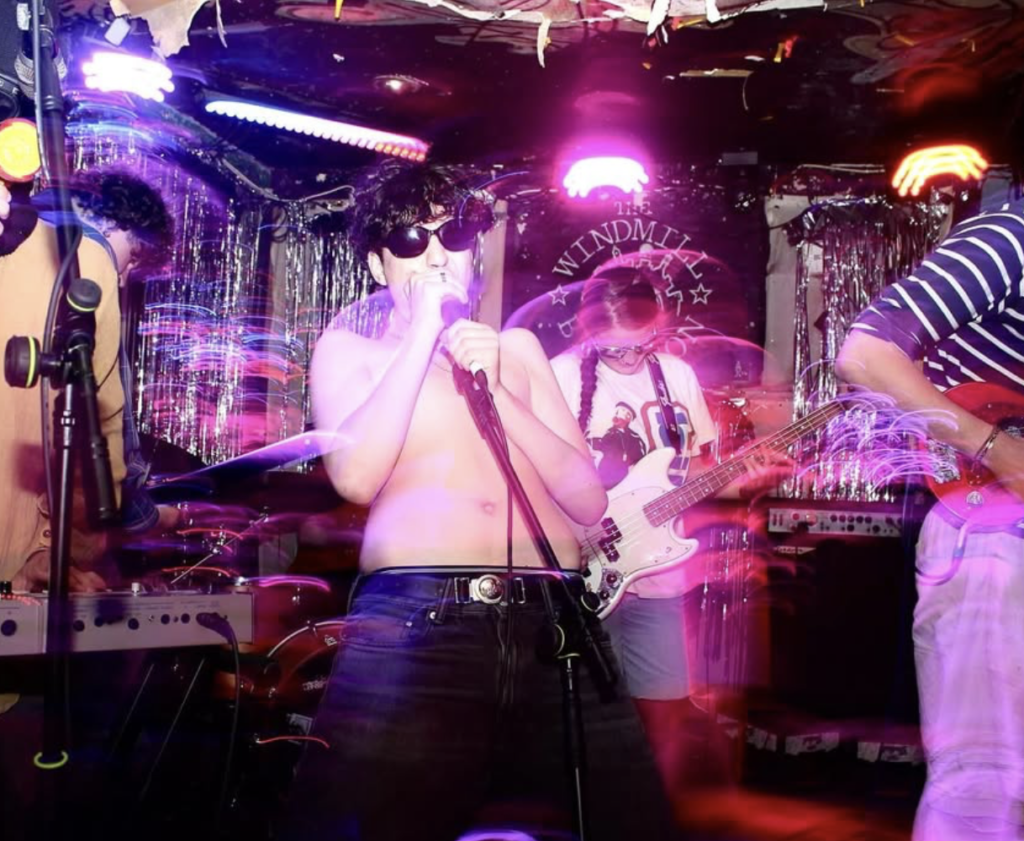 GAY HITLER!!! scream Omertà twenty times on their debut single of the same name. It’s an effective distillation of the absurd, invasive chaos of their manically intense live shows. The London garage-punks can be hard to describe but they are, if anything, a band having lots of fun: a breath of fresh air in a scene crowded with performative sincerity and emotional theatrics. We sat down with the band (James on vocals, Sonny and Ollie on guitar, Lucy on bass, Jett on keys/drum machine and Rhys on drums) at their Windmill headline to chat about everything from why they like it when people leave their gigs early to butt plugs and the time the police showed up at one of their shows.