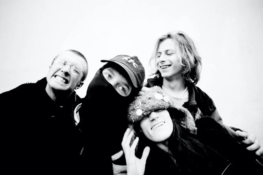 Fast, all-encompassing and unrelenting, UNIVERSITY have a flair for the theatrical. Their sound thrashes with the energy of flailing bodies and restless experimentation, fusing odd turns with a throwaway post-post-punk spirit. None of them actually went to university – instead, they doubled down on their decision to keep making music, a choice that now underpins their cult status. As we sit down in the George Tavern garden, the Crewe four-piece (Ewan on bass/synths, Zak on guitar/vocals, Joel on drums and Eddie onXbox 360) hum with a nervous energy, still finding their footing as cult favourites while bracing for their London headline that was only an hour ahead. We talked everything from nights out with French models on tour to the certainty that they’d never want to be from London.